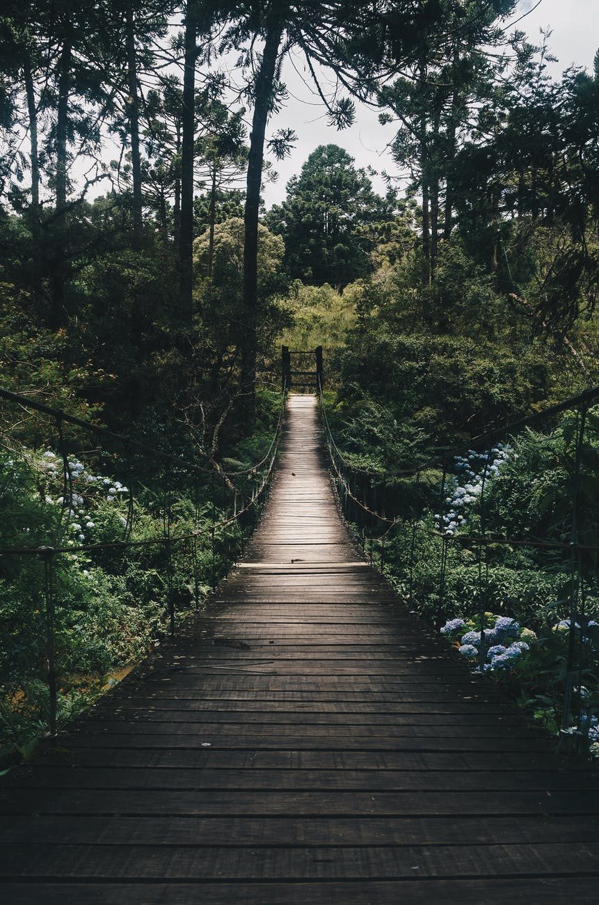 black hanging bridge surrounded by green forest trees Published 25/05/2022 at 861 × 1300 in black hanging bridge surrounded by green forest trees Photo by Kaique Rocha on Pexels.com